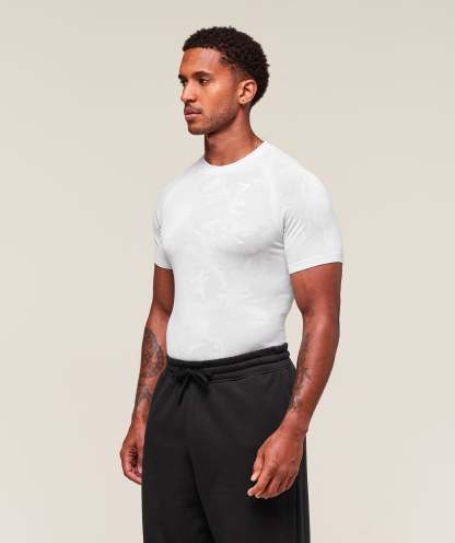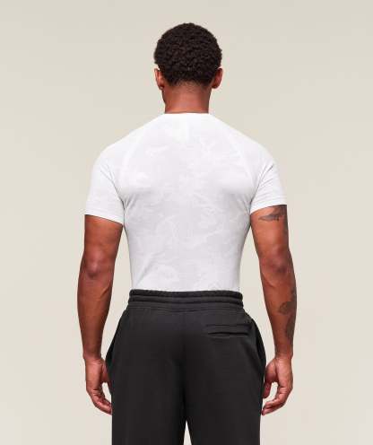 Get freedom 'til the finish in Geo Seamless. Sweat-wicking tech and breathable mesh structures keep you cool and dry. Lightweight material and minimal seams ensure zero distractions for maximum focus. And raglan sleeves accentuate your shoulders for a subtle nod to the physique you’ve worked for. It’s time to release your movement and reimagine your capabilities. You ready?