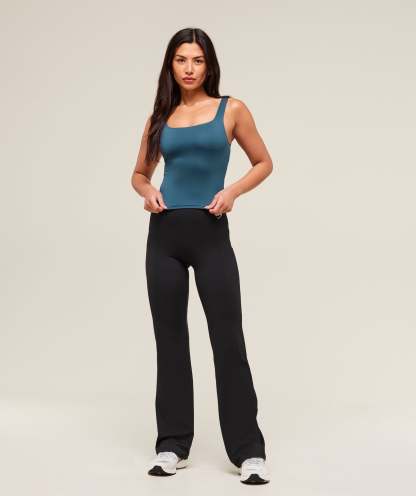 • Flattering square neck to the front and back